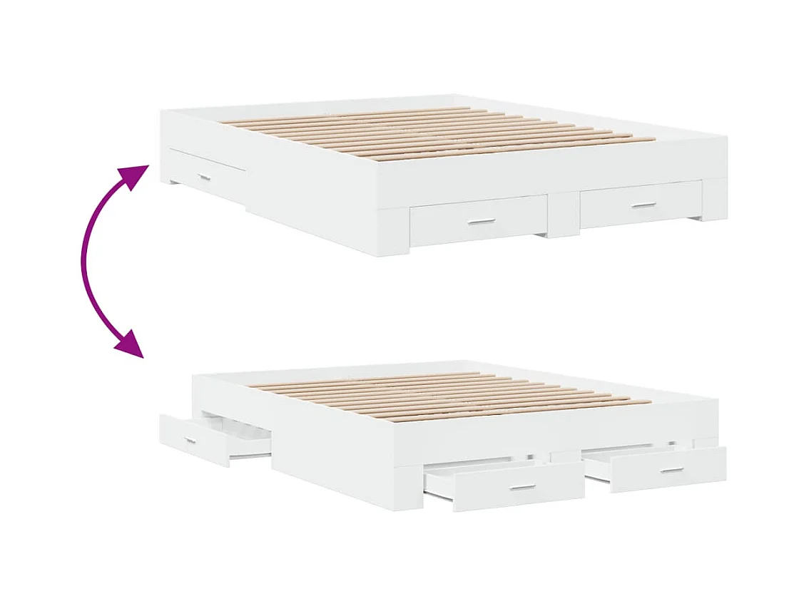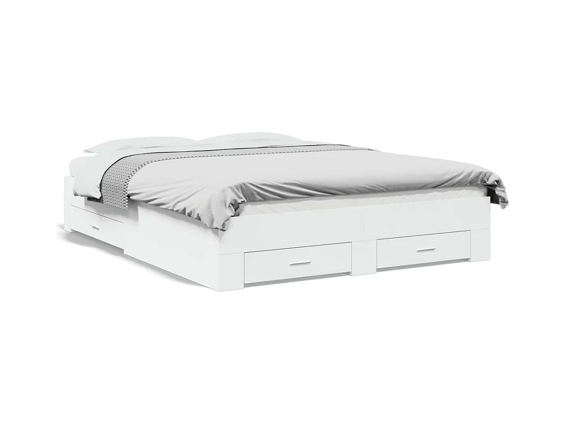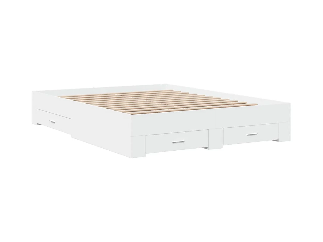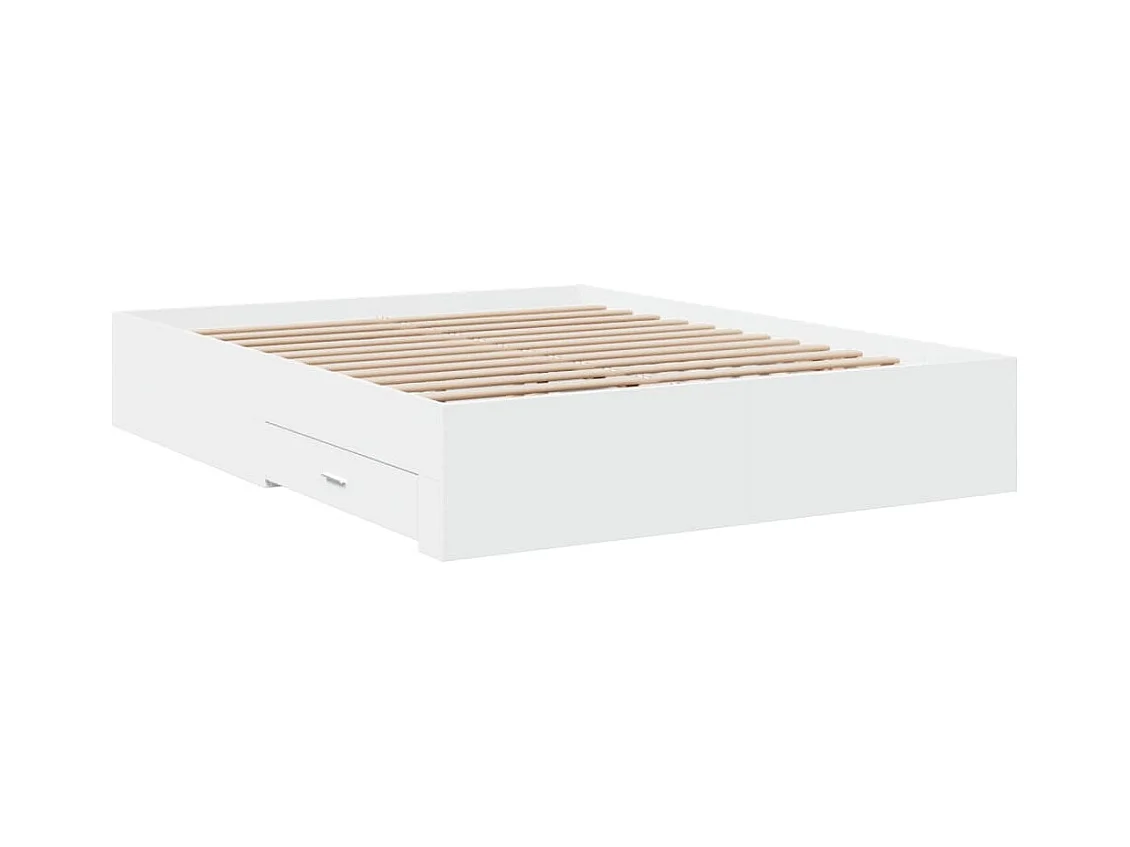 Cadre de lit avec tiroirs blanc 140x200 bois d'ingénierie
