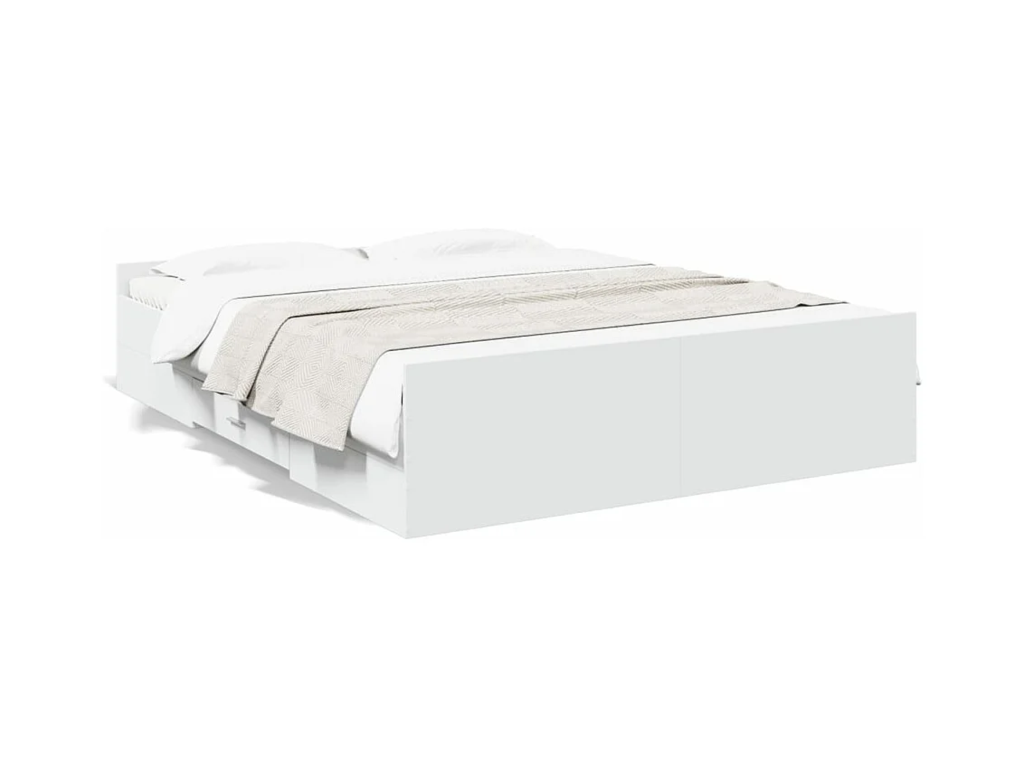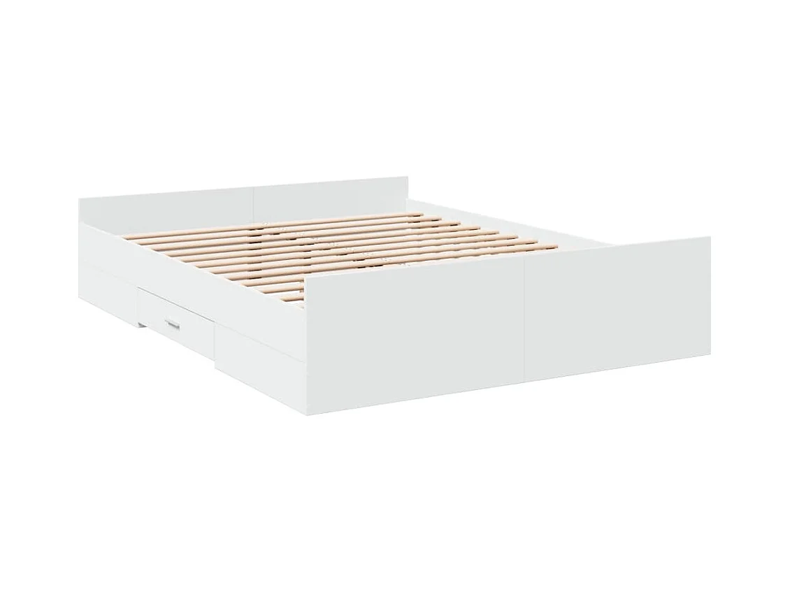 Cadre de lit avec tiroirs blanc 150x200 bois d'ingénierie