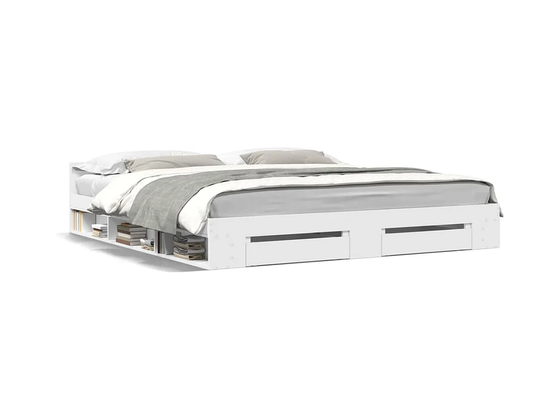 Cadre de lit avec tiroirs blanc 180x200 cm bois d'ingénierie