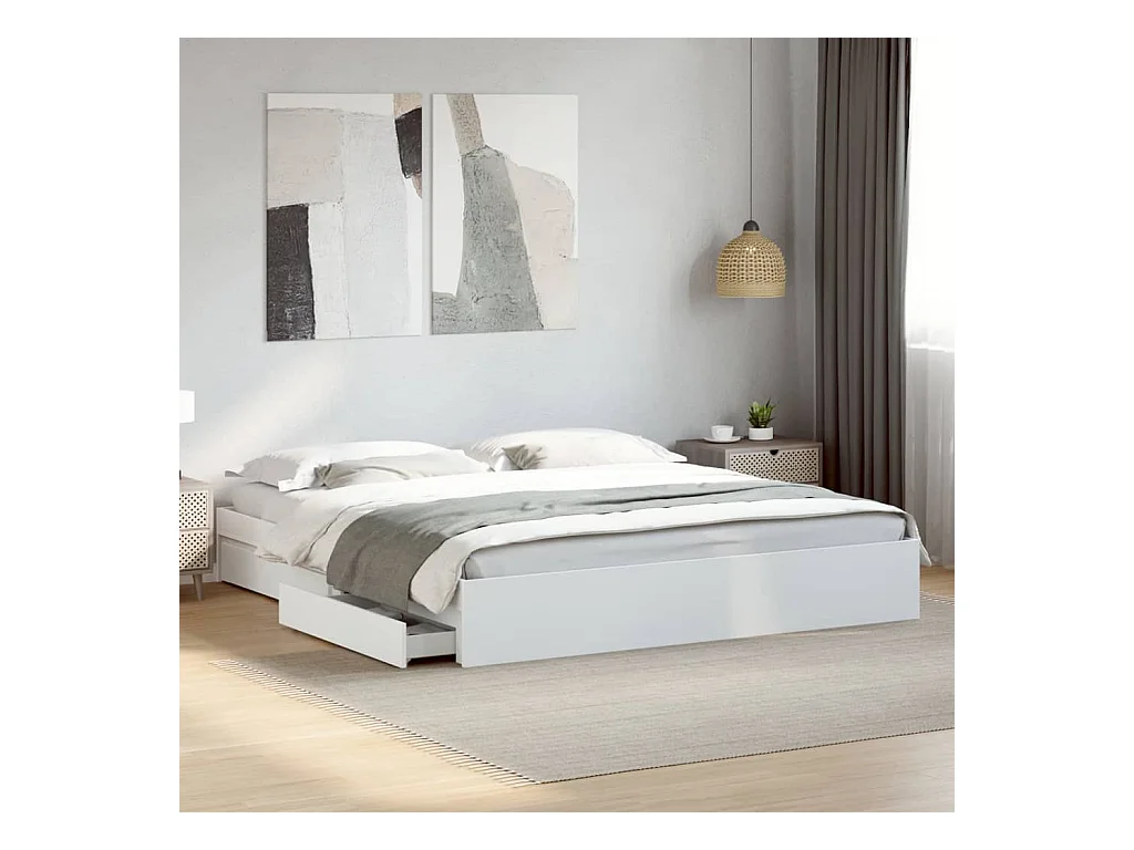 Cadre de lit avec tiroirs blanc 200x200 cm bois d'ingénierie