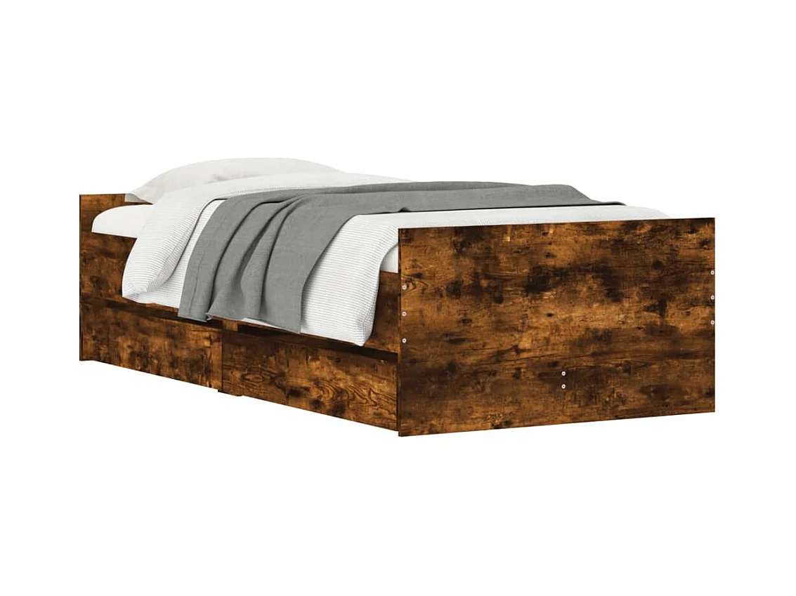 Cadre de lit avec tiroirs chêne fumé 90x190