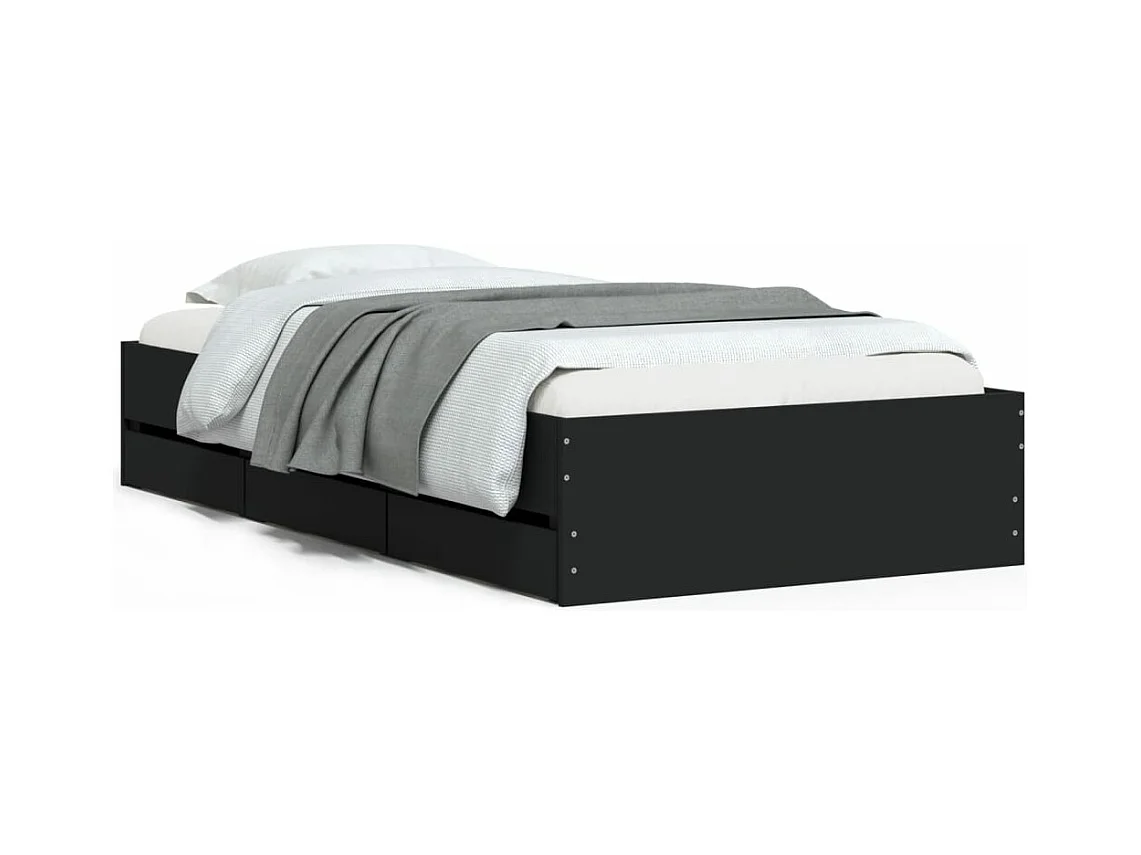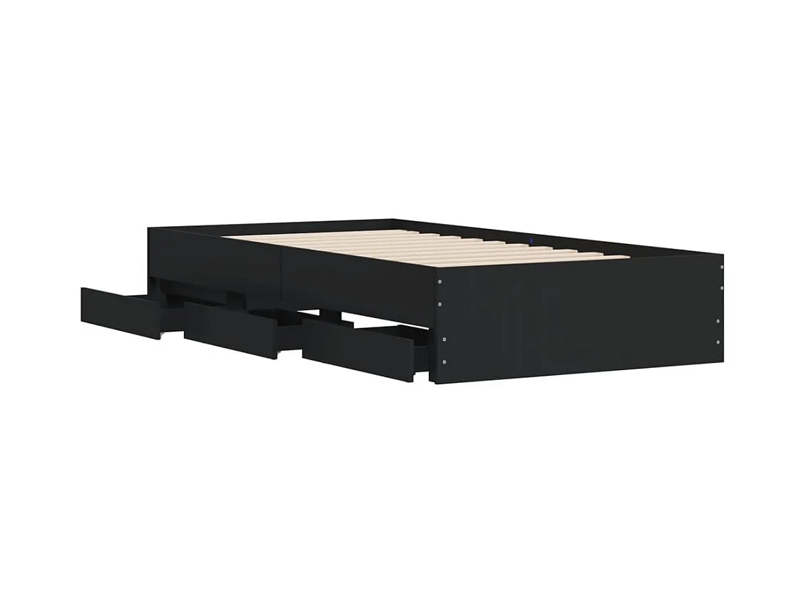 Cadre de lit avec tiroirs noir 100x200 bois d'ingénierie