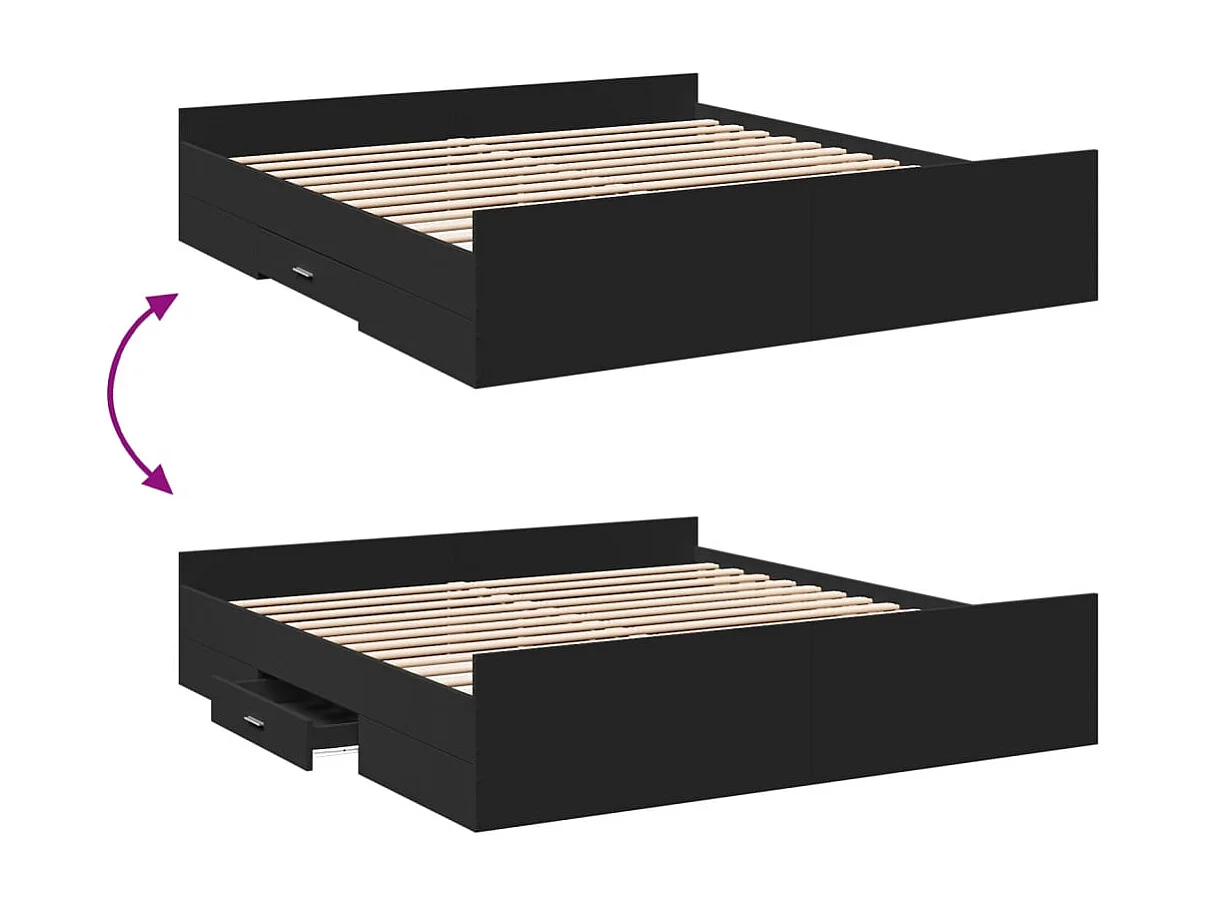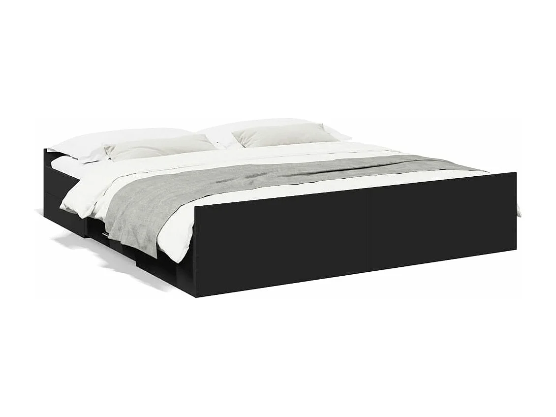 Cadre de lit avec tiroirs noir 180x200 bois d'ingénierie