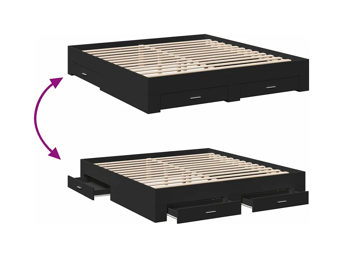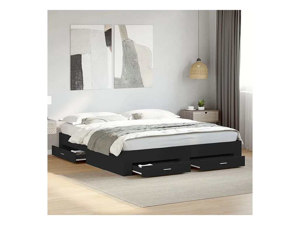 Cadre de lit avec tiroirs noir 200x200 bois d'ingénierie