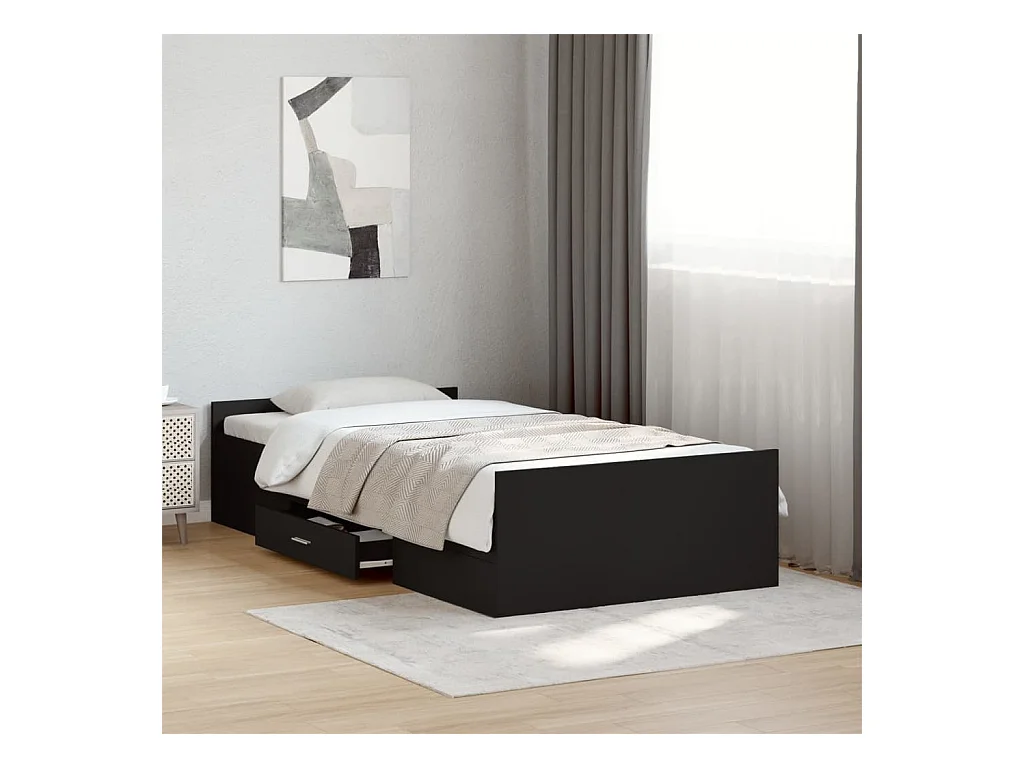 Cadre de lit avec tiroirs noir 75x190 bois d'ingénierie