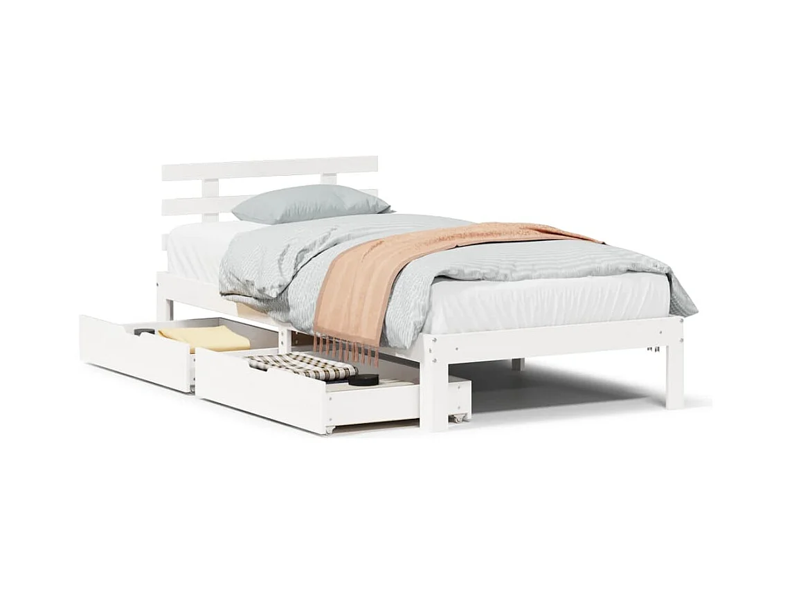 Cadre de lit avec tiroirs sans matelas blanc 75x190 cm