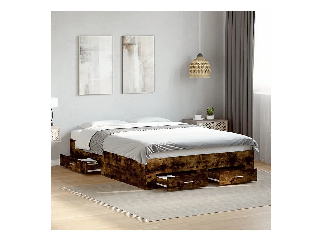 Cadre de lit avec tiroirs sans matelas chêne fumé 140x190 cm