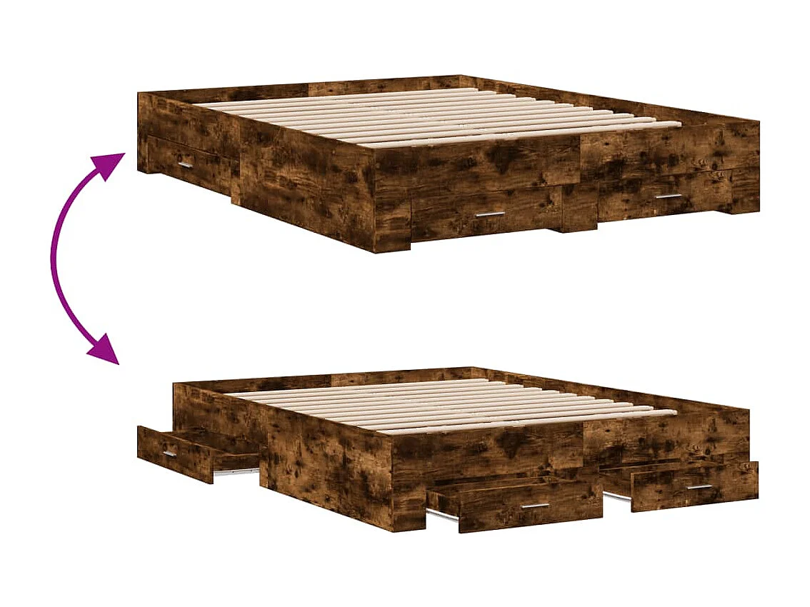 Cadre de lit avec tiroirs sans matelas chêne fumé 160x200 cm