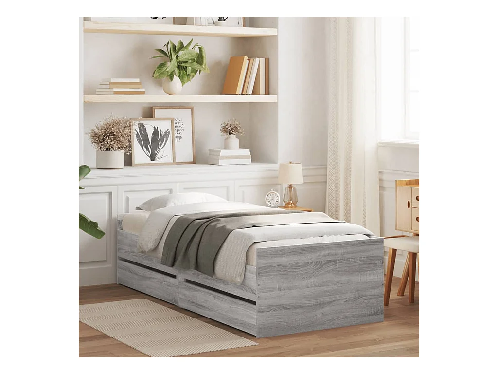 Cadre de lit avec tiroirs sonoma gris 100x200