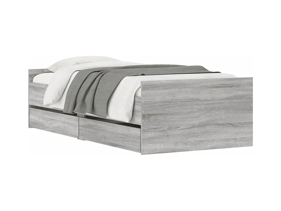 Cadre de lit avec tiroirs sonoma gris 75x190