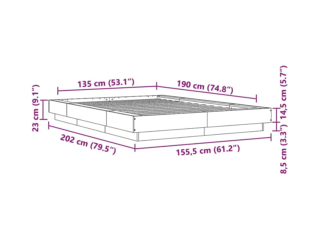 Cadre de lit blanc 135x190 cm bois d'ingénierie