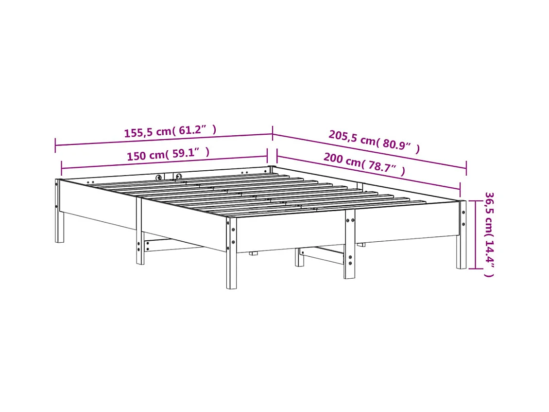 Cadre de lit blanc 150x200 bois de pin massif