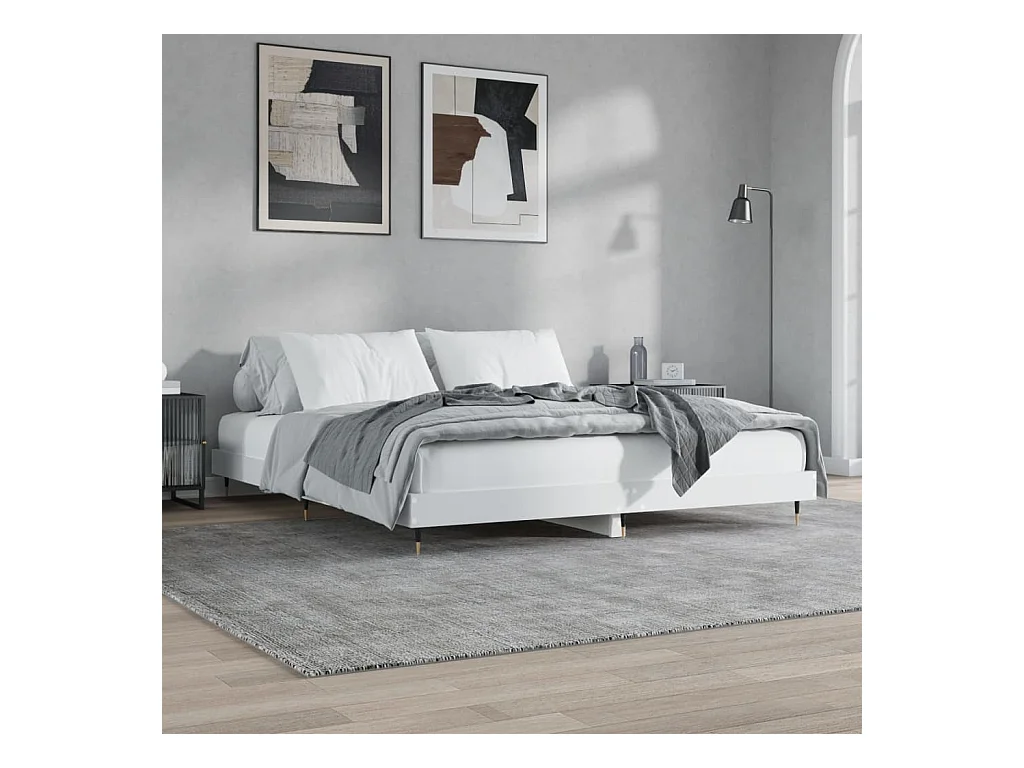 Cadre de lit blanc 200x200 bois d'ingénierie
