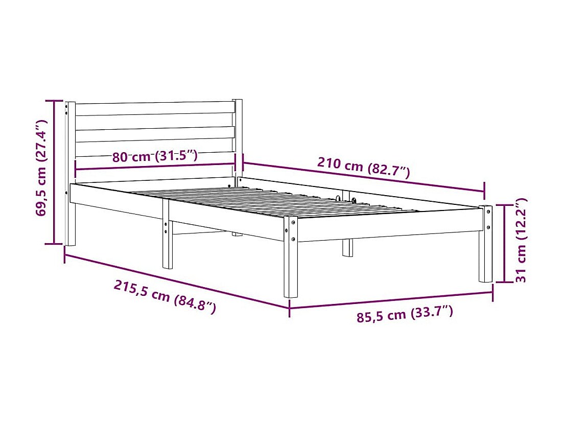 Cadre de lit Blanc 210 x 80 cm Bois massif en pin