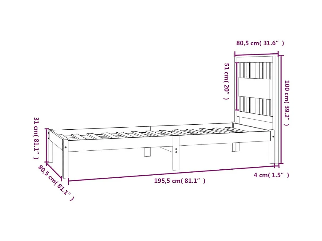Cadre de lit sans matelas blanc 75x190 cm bois de pin massif