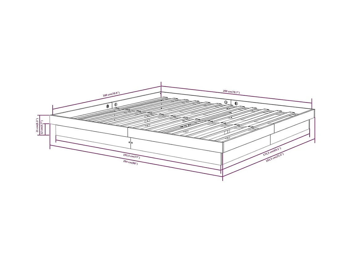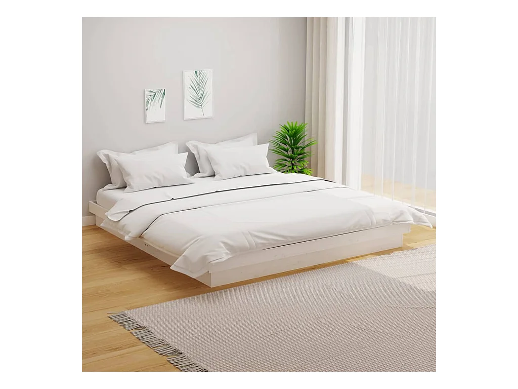 Cadre de lit blanc bois massif 180x200 cm super king