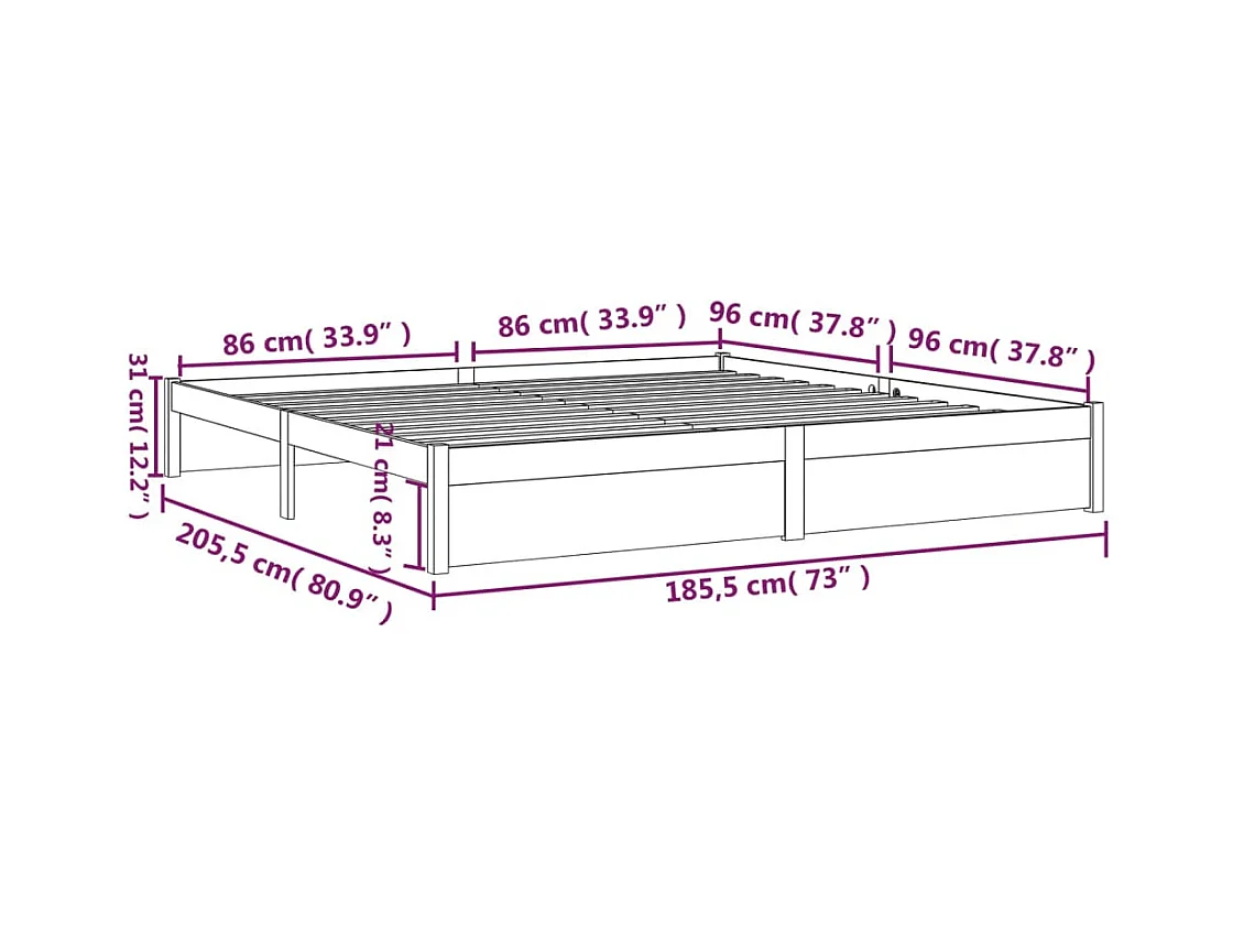 Cadre de lit Blanc Bois massif 180x200 cm Super King