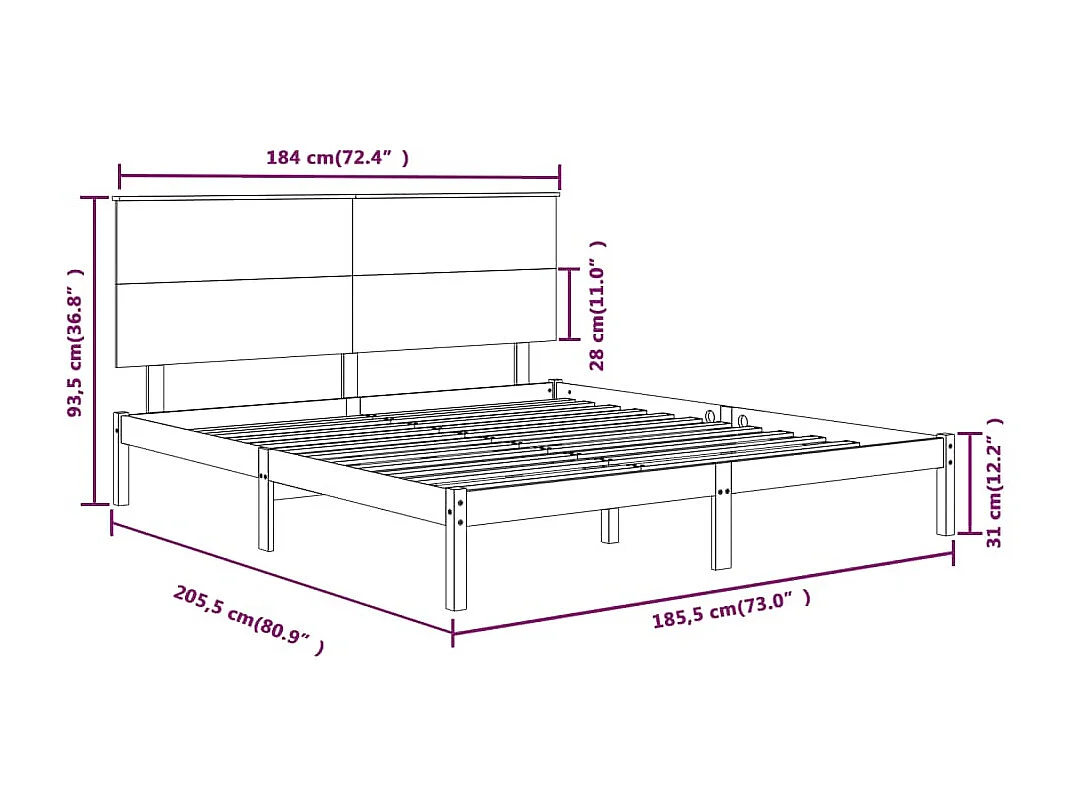 Cadre de lit Blanc Bois massif 180x200 cm Super King