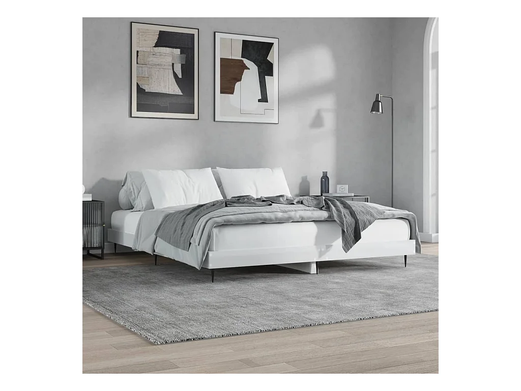 Cadre de lit blanc brillant 120x200 bois d'ingénierie