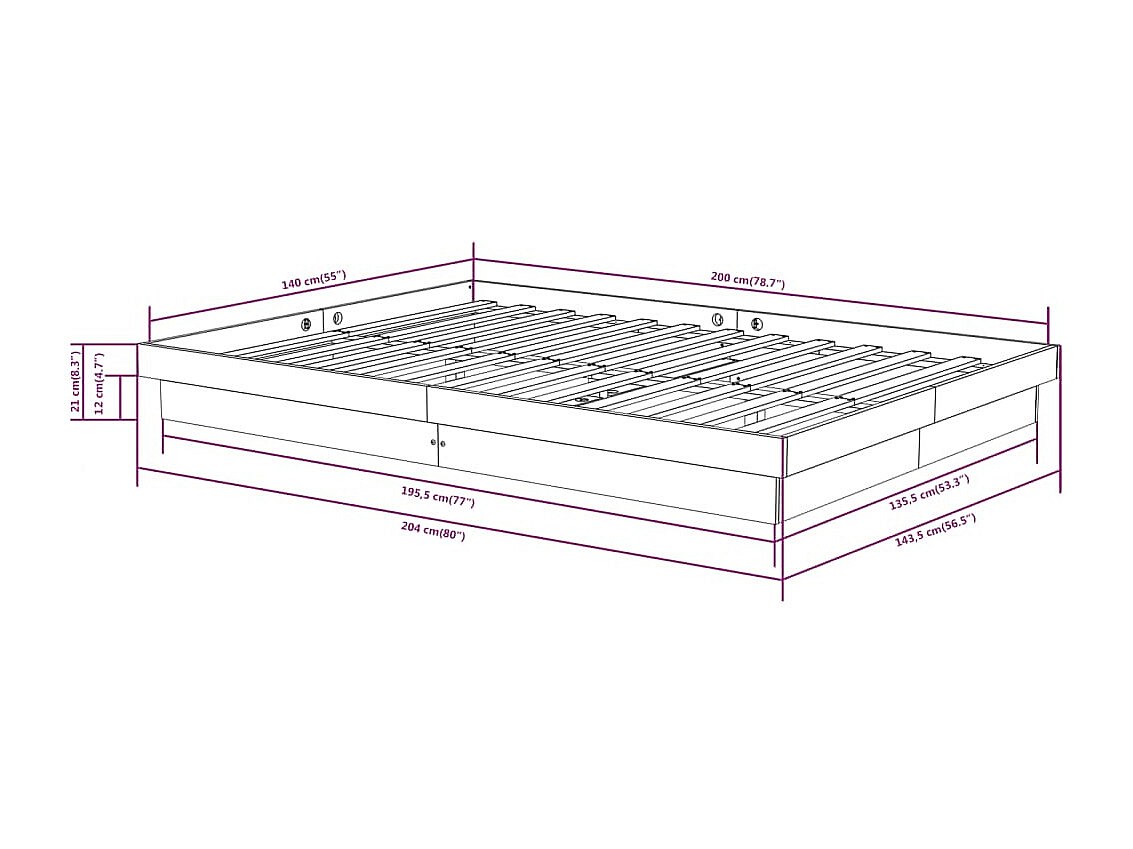 Cadre de lit Bois massif 140x200 cm
