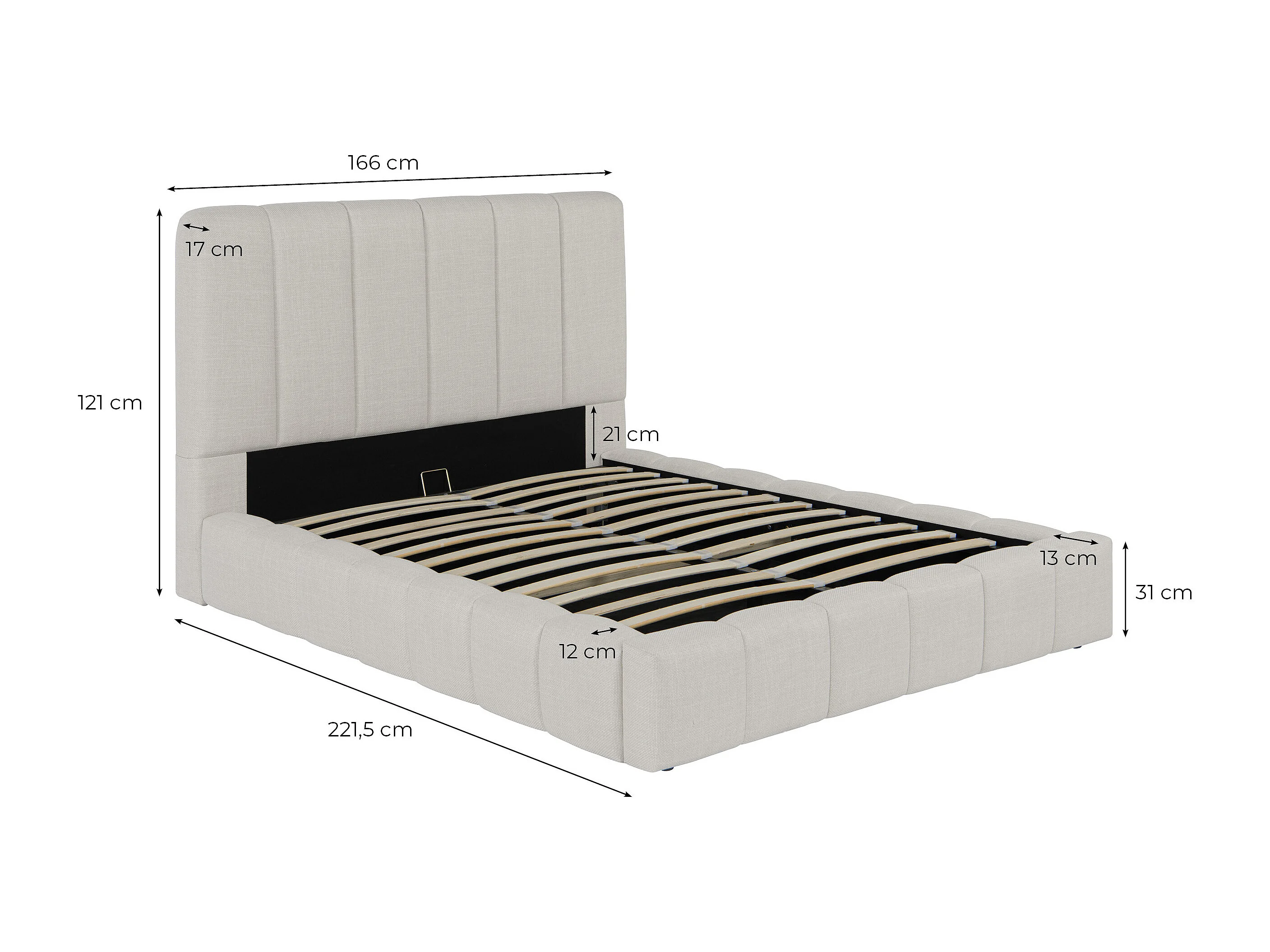 Cadre de lit BULLE rembourré avec coffre en tissu blanc cassé - couchage 140x190cm