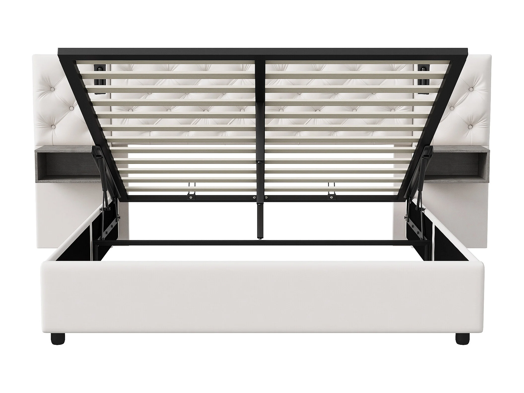 Cadre De Lit Capitonné Blanc - Rangement Hydraulique - Niches De Rangement Latérales - Lampes De Lecture Intégrées - 160 x 200