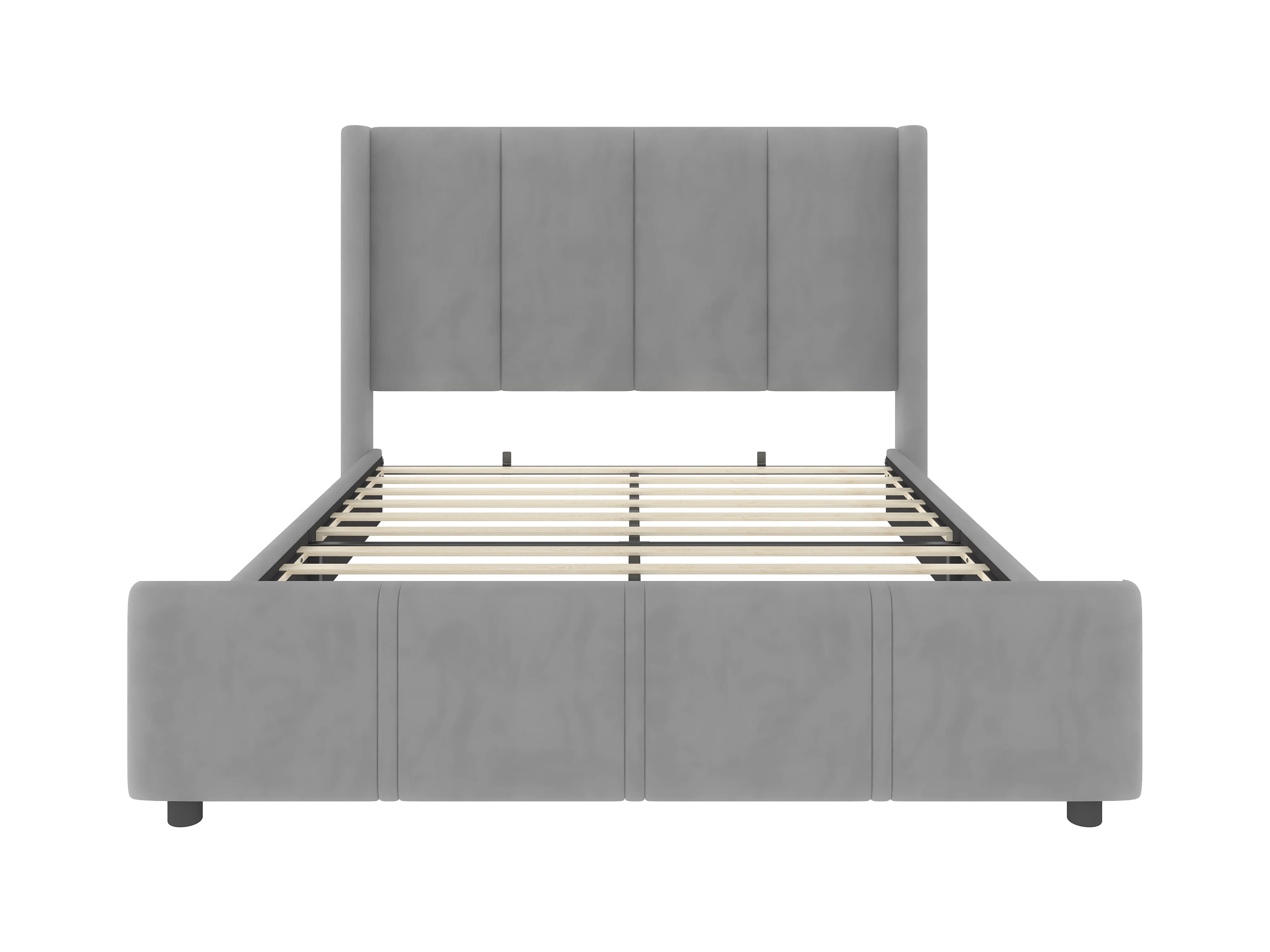 Cadre de lit capitonné élégant moderne 140x200cm (Gris) – Haut tête/pied de lit, port USB certifié, combo cadre acier/plaque en bois, stable et durable