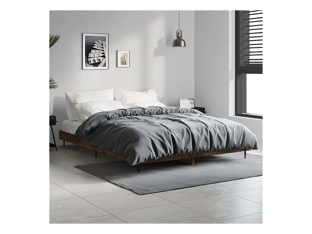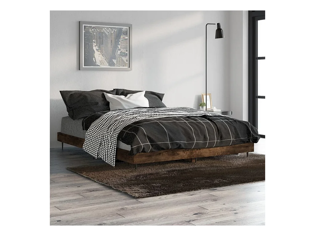 Cadre de lit chêne fumé 135x190 bois d'ingénierie