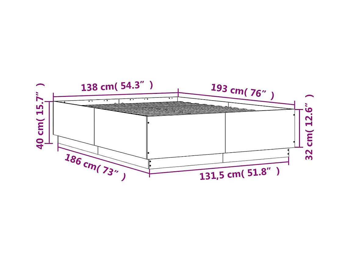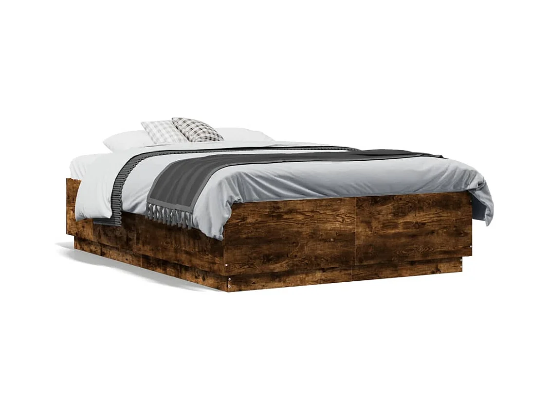 Cadre de lit chêne fumé 135x190 bois d'ingénierie