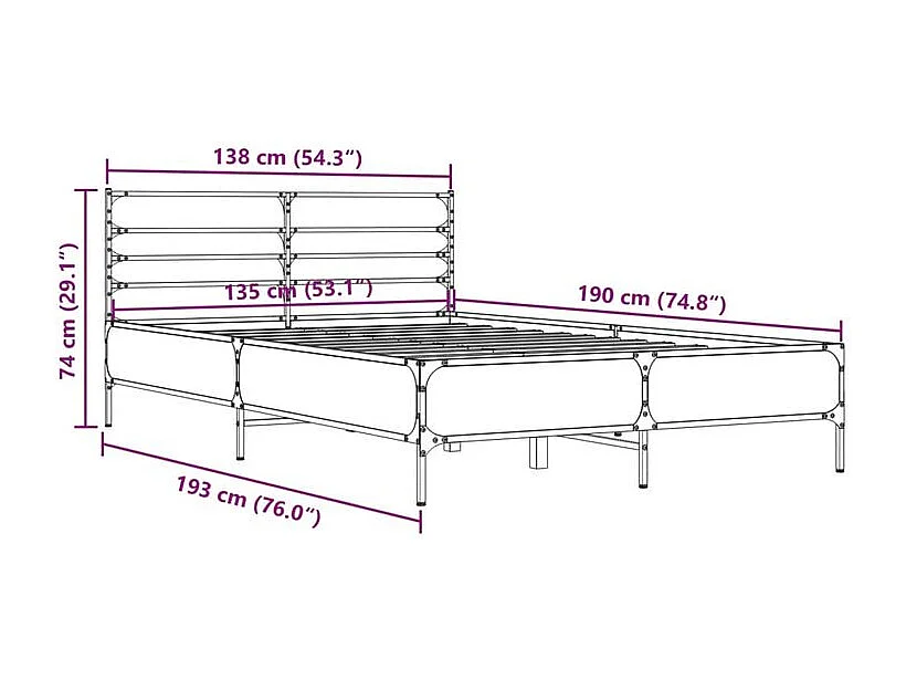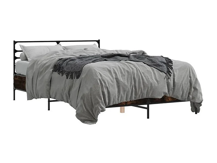 Cadre de lit chêne fumé 135x190 bois d'ingénierie et métal