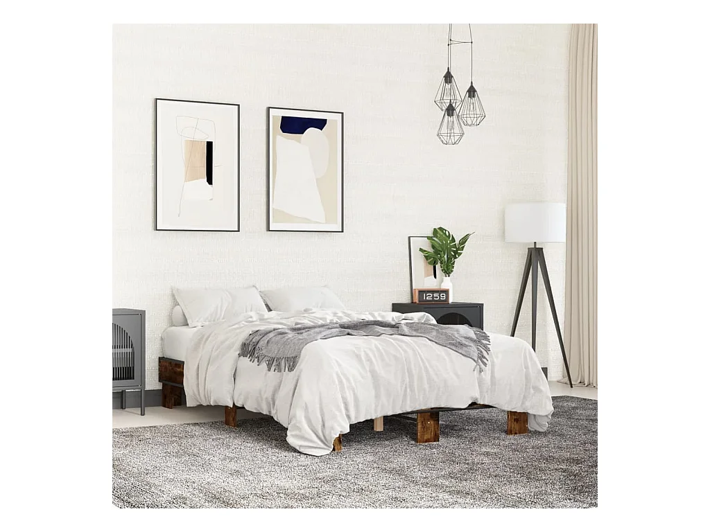 Cadre de lit chêne fumé 140x190 bois d'ingénierie et métal