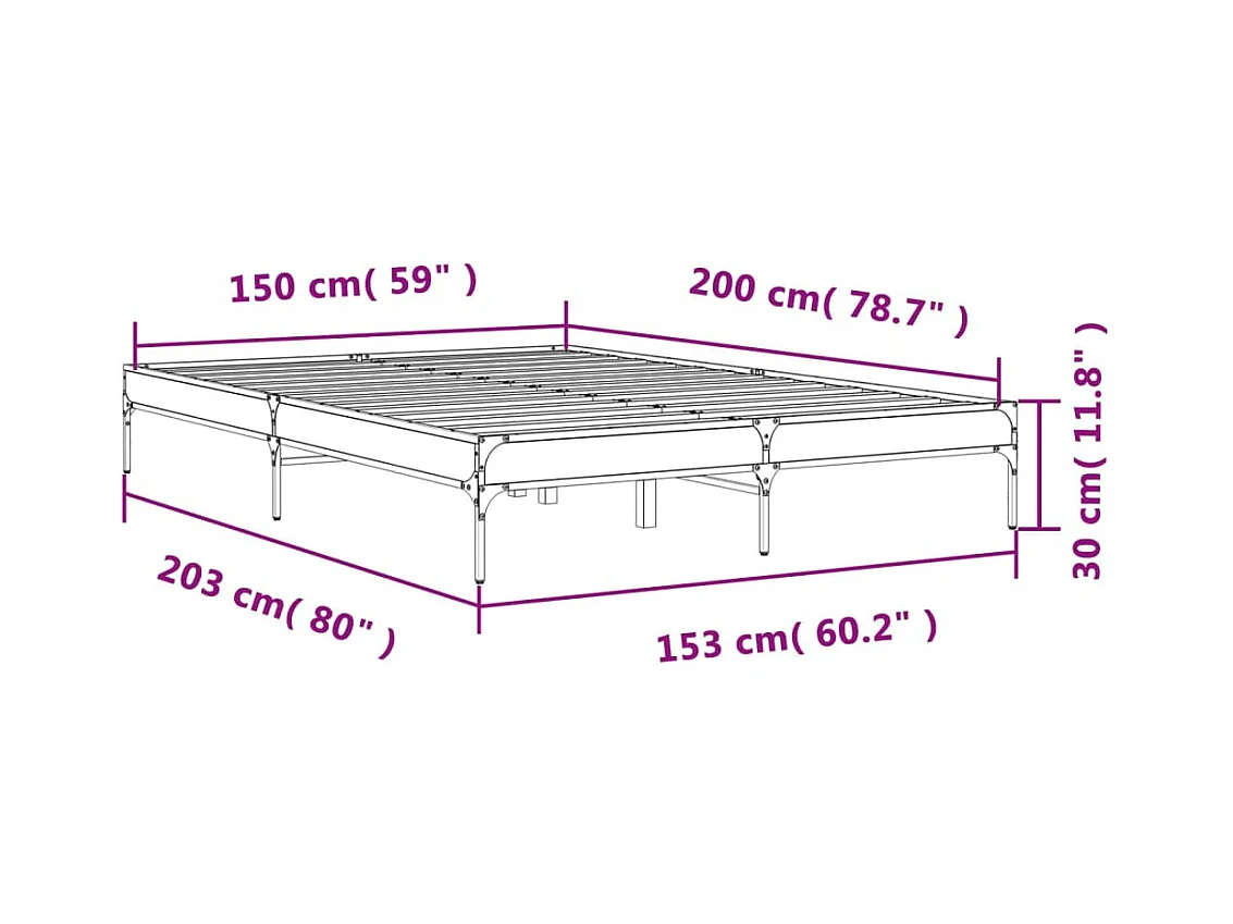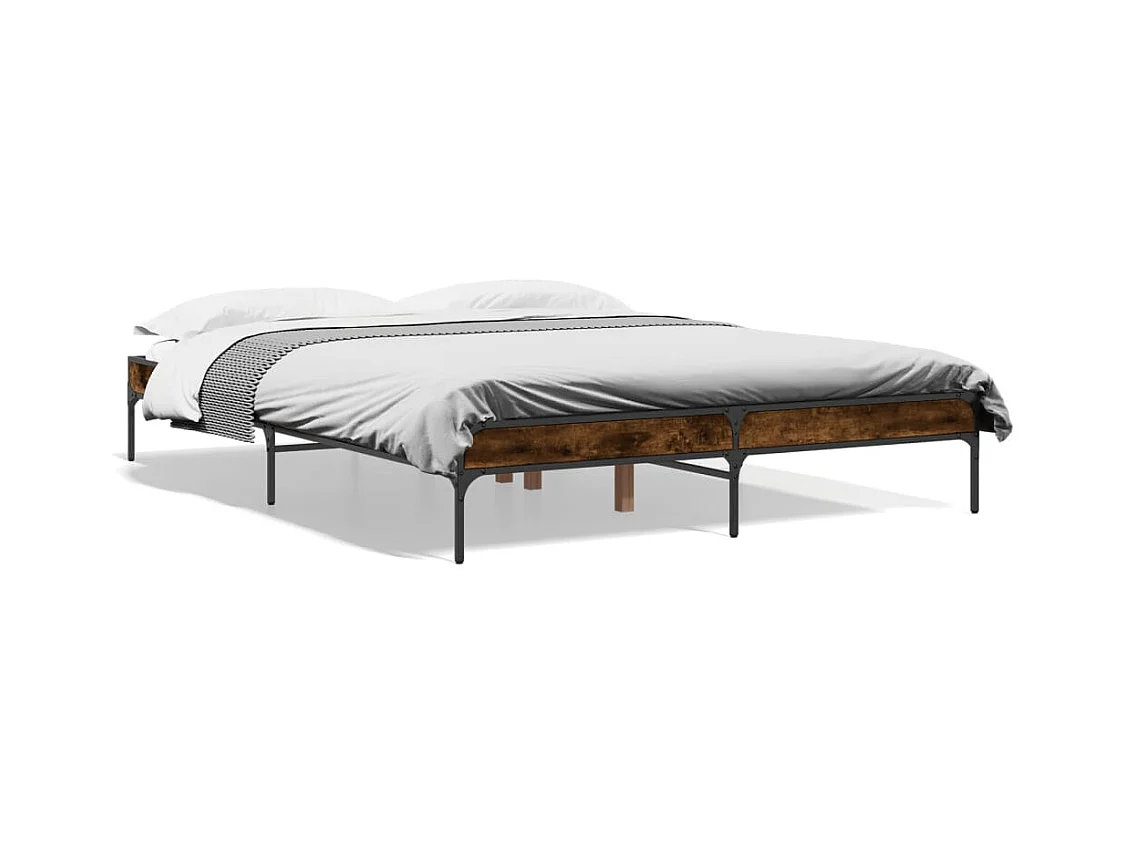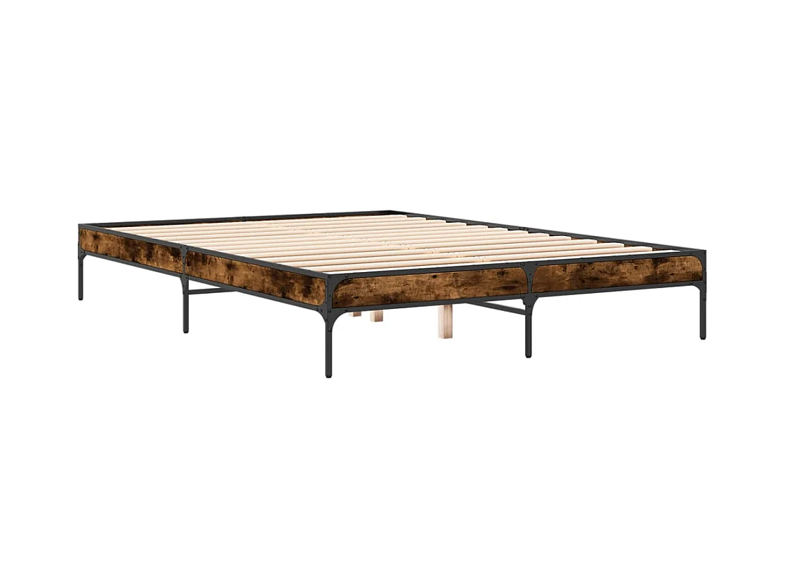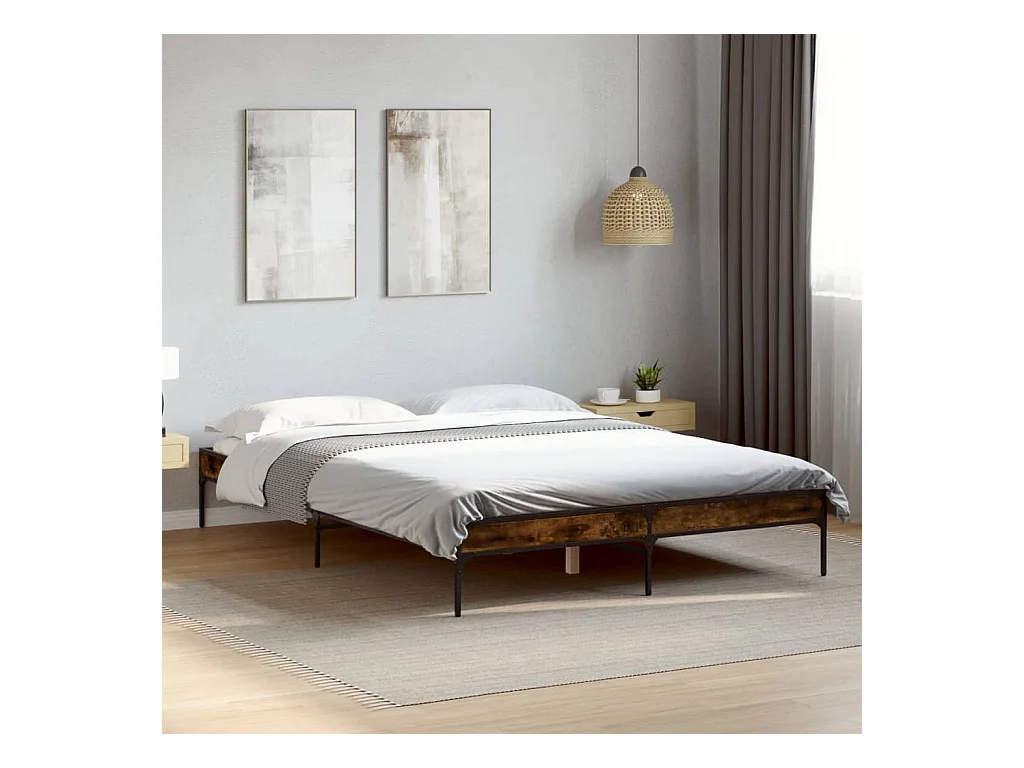 Cadre de lit chêne fumé 150x200 bois d'ingénierie et métal