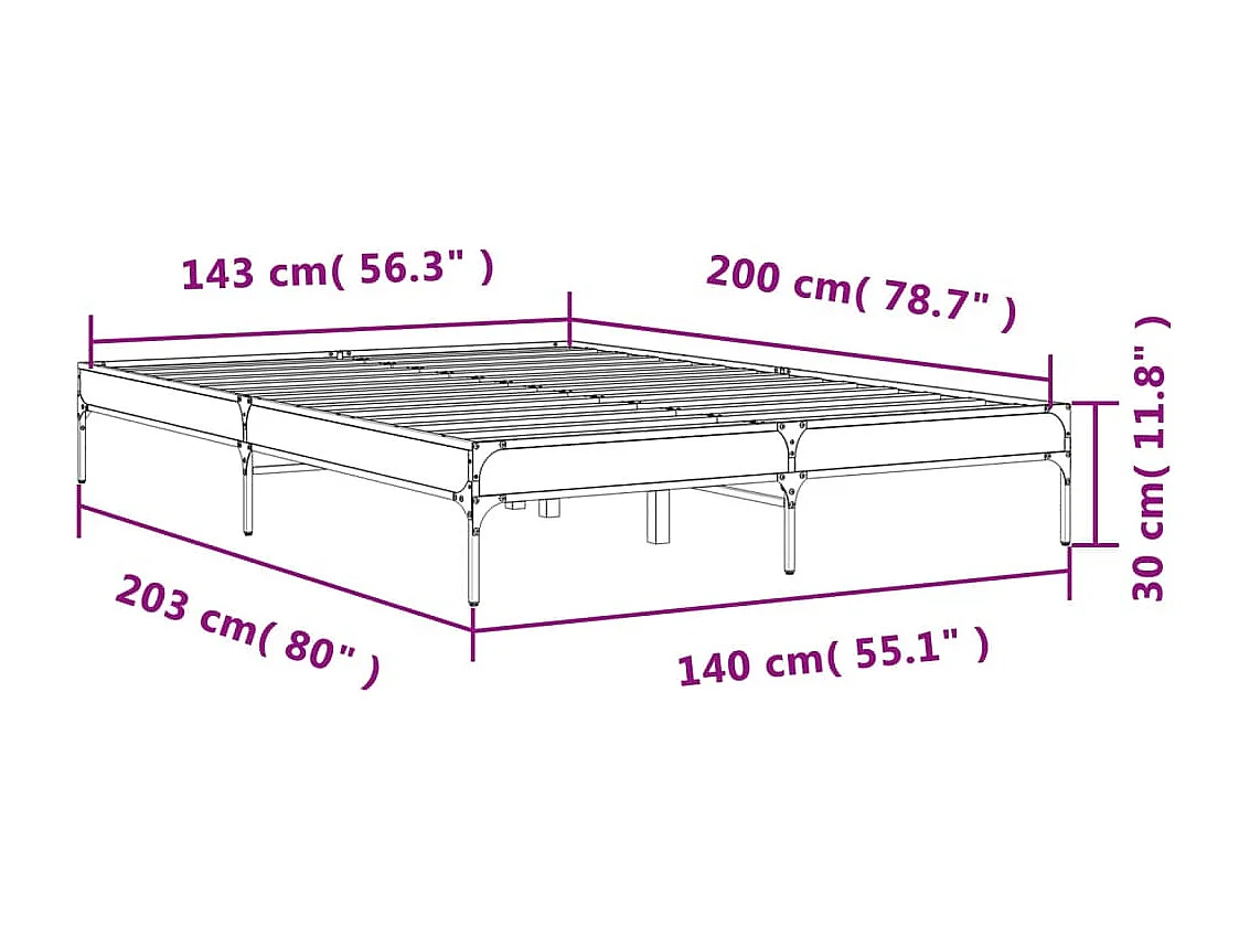 Cadre de lit chêne marron 140x200 bois d'ingénierie et métal