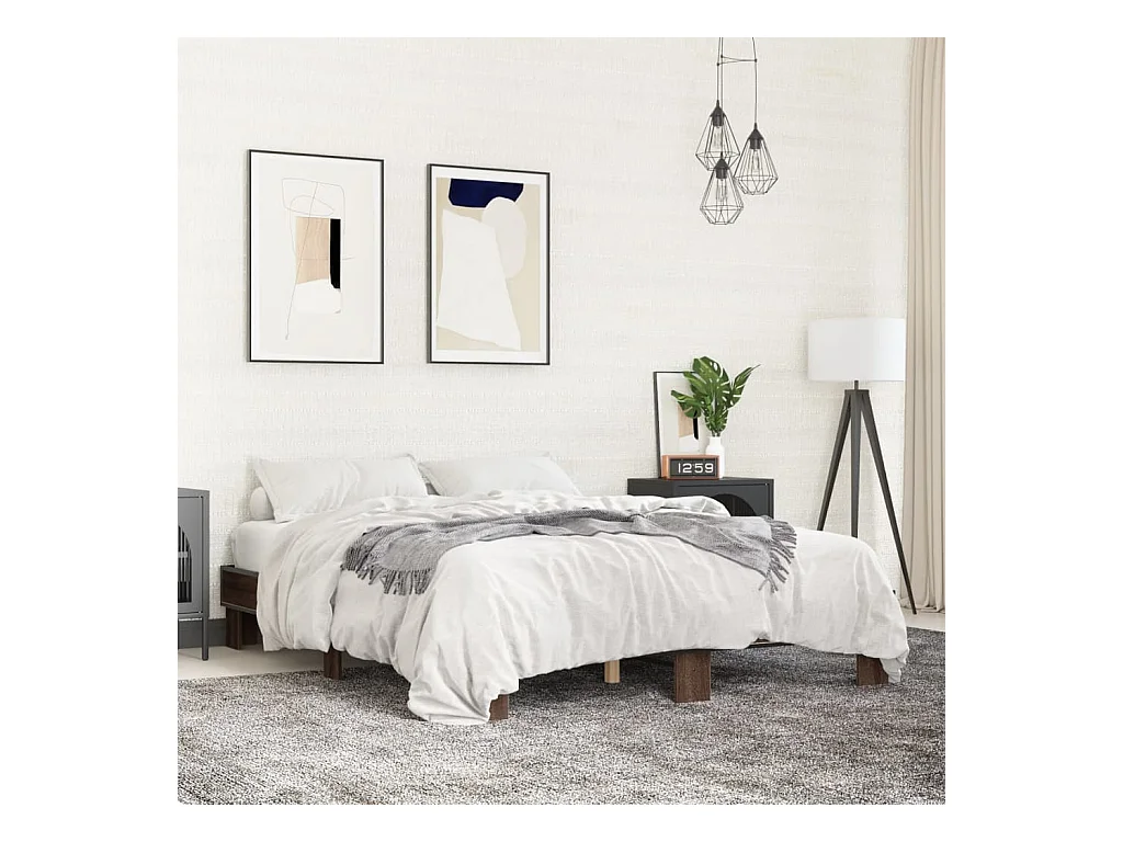 Cadre de lit chêne marron 150x200 bois d'ingénierie et métal