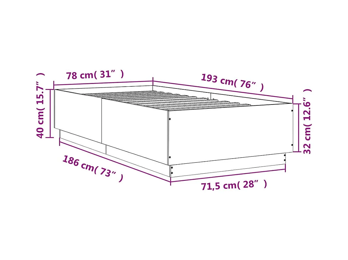 Cadre de lit chêne marron 75x190 bois d'ingénierie