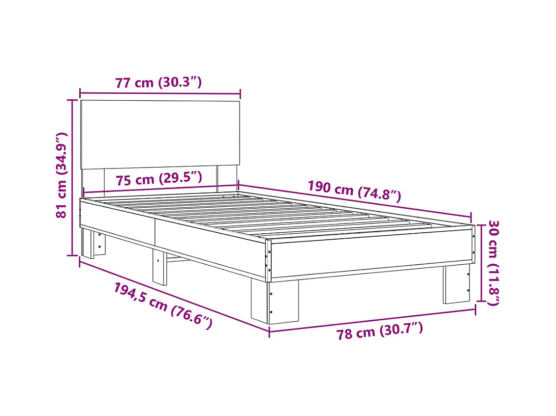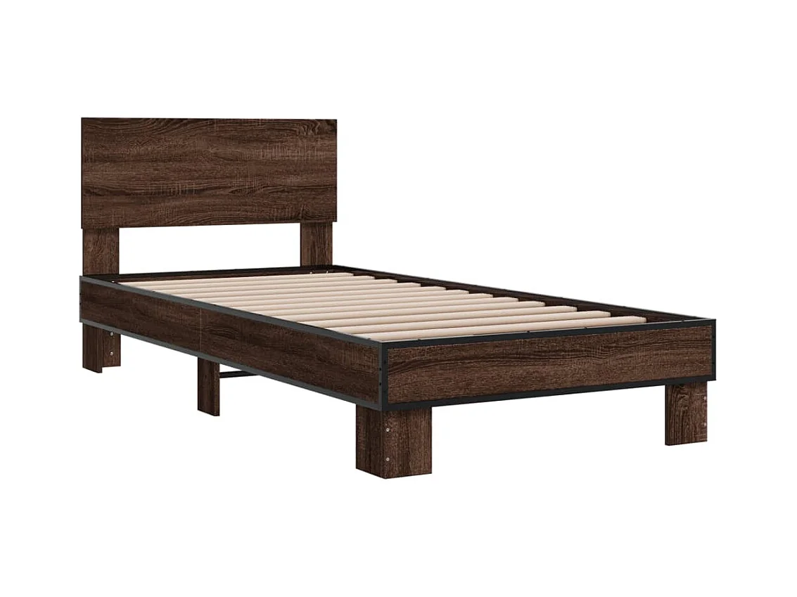 Cadre de lit chêne marron 75x190 bois d'ingénierie et métal
