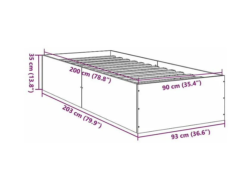 Cadre de lit chêne marron 90x200 bois d'ingénierie