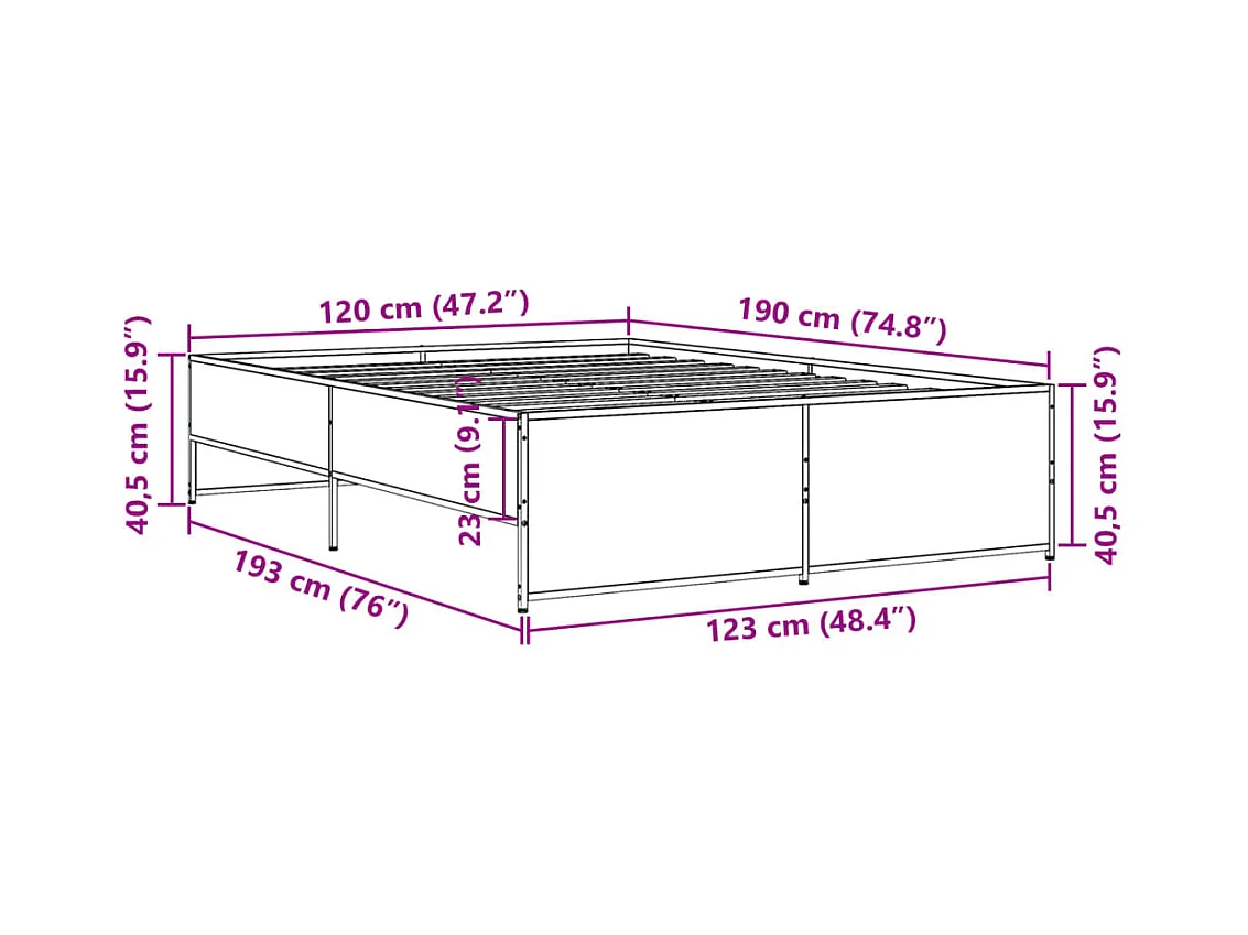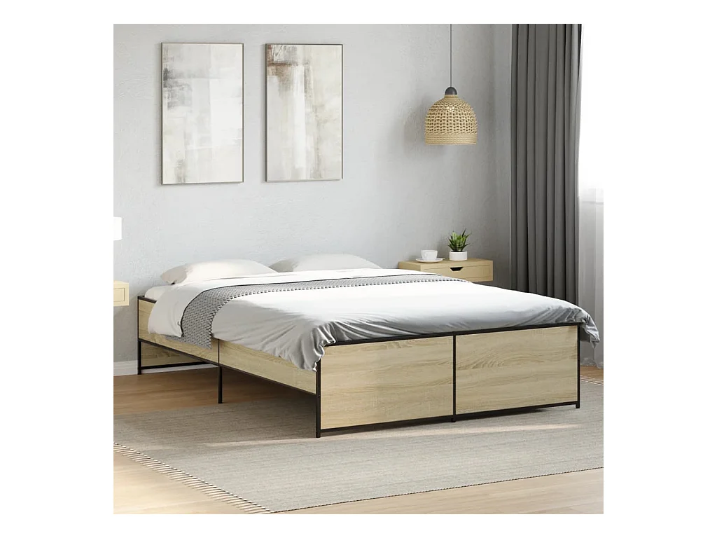 Cadre de lit chêne sonoma 120x190 bois d'ingénierie et métal