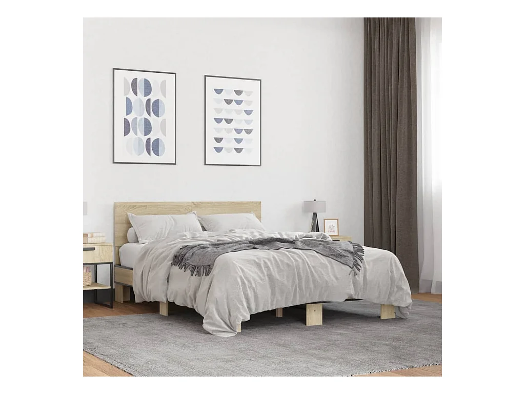 Cadre de lit chêne sonoma 120x200 bois d'ingénierie et métal