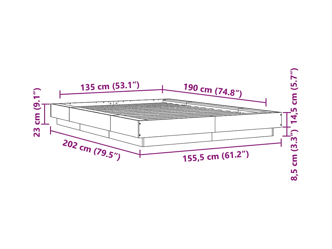 Cadre de lit chêne sonoma 135x190 bois d'ingénierie