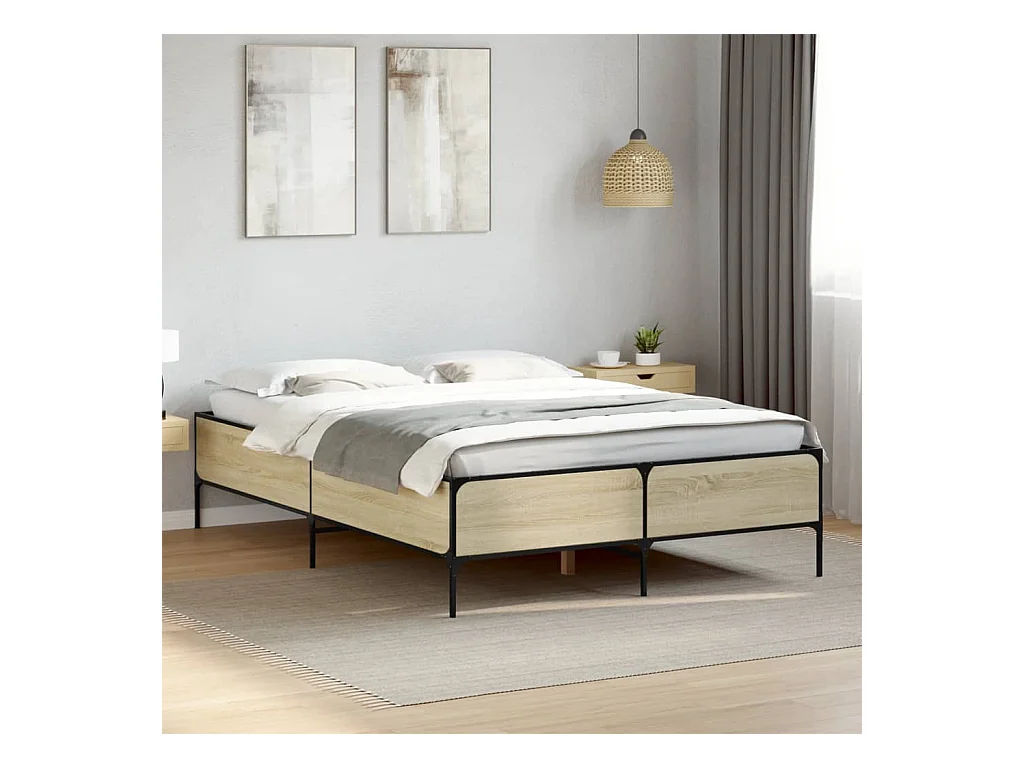 Cadre de lit chêne sonoma 140x200 bois d'ingénierie et métal
