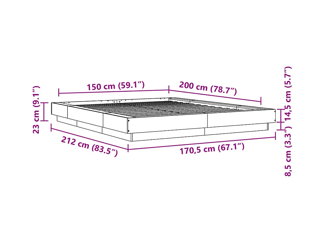 Cadre de lit chêne sonoma 150x200 bois d'ingénierie