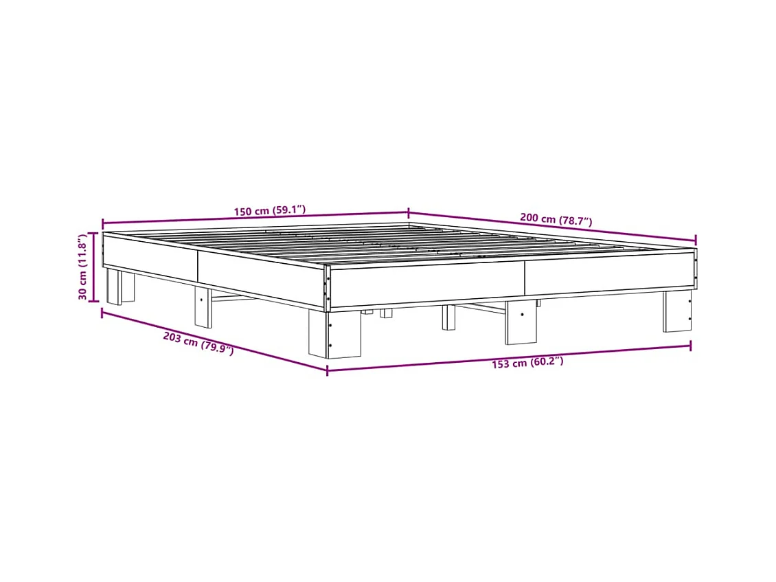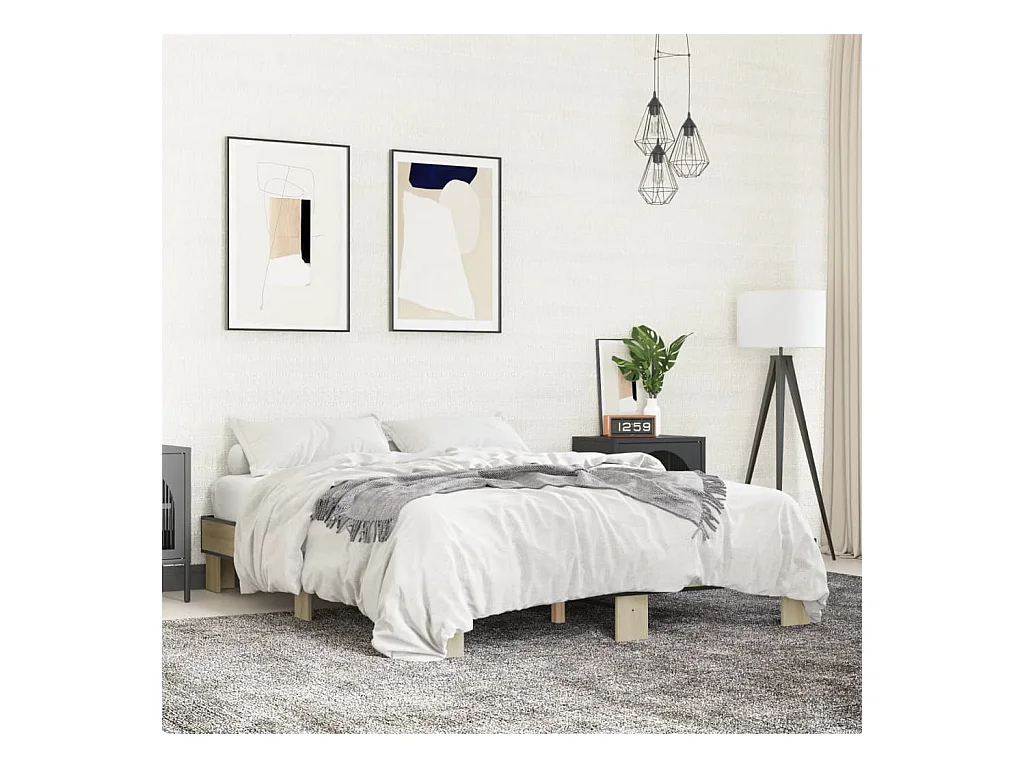 Cadre de lit chêne sonoma 150x200 bois d'ingénierie et métal