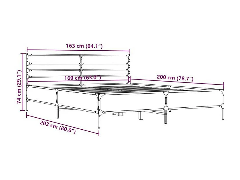Cadre de lit chêne sonoma 160x200 bois d'ingénierie et métal