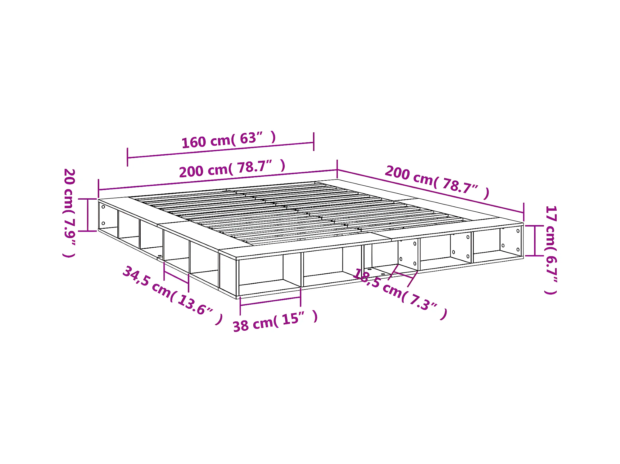 Cadre de lit chêne sonoma 200x200 bois d'ingénierie