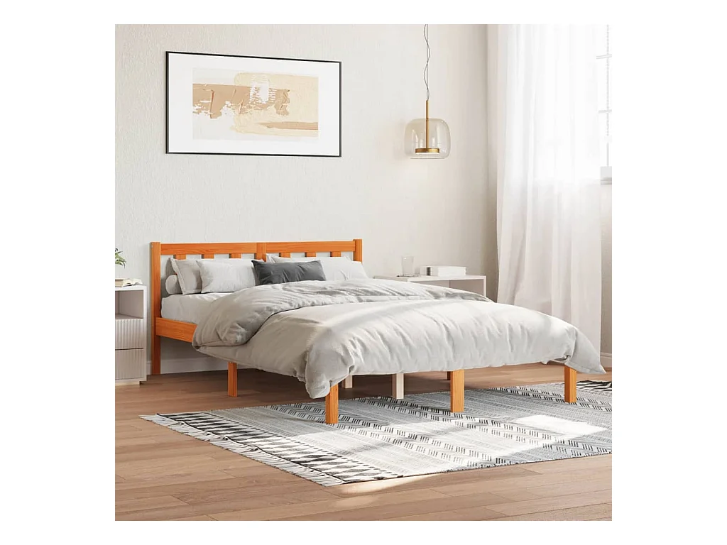 Cadre de lit cire marron 140x190 cm bois de pin massif