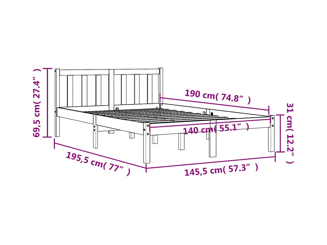 Cadre de lit avec tête de lit 140x190 cm bois massif