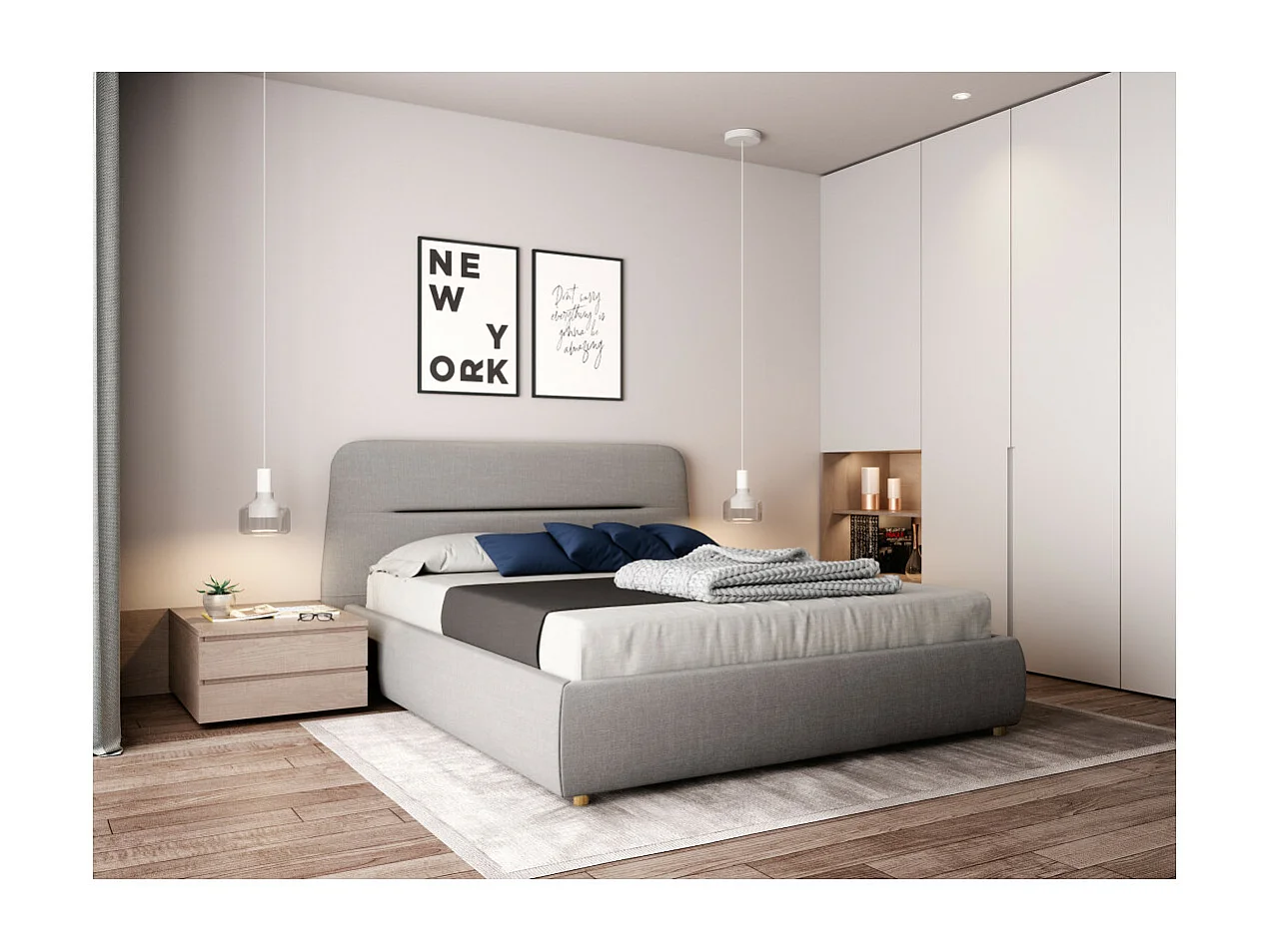 Cadre de lit coffre BONY avec sommier à lattes - Gris clair - Largeur 140 cm