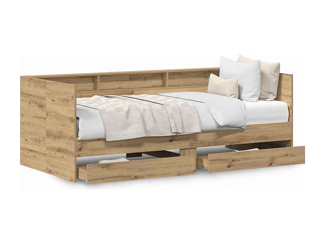 Cadre de lit de jour avec tiroirs chêne artisanal 75 x 190 cm