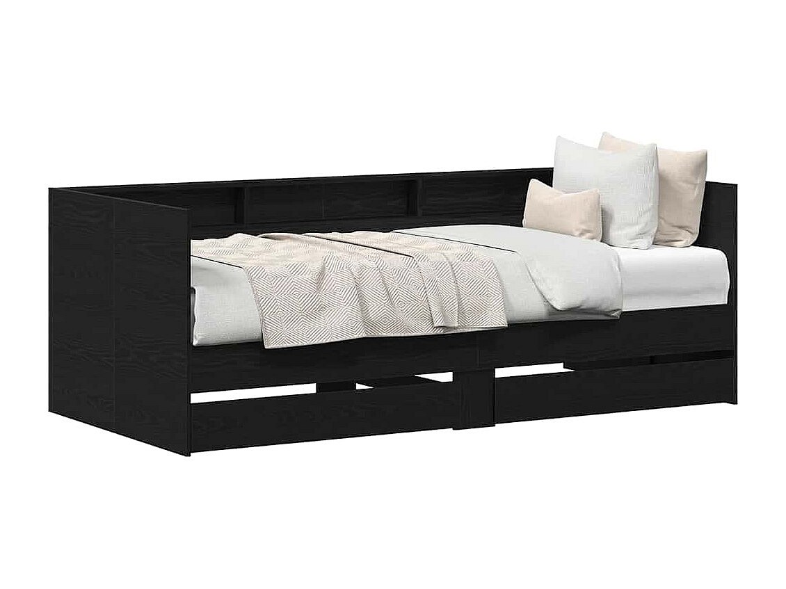 Cadre de lit de jour avec tiroirs Chêne noir 75 x 190 cm
